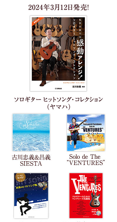 一人でベンチャーズ4人分を弾いてしまったり、即興で驚きのテクニックを披露したり、 そして何よりも楽しいトークが大人気の古川忠義が、あなたのギター上達をお手伝いします!