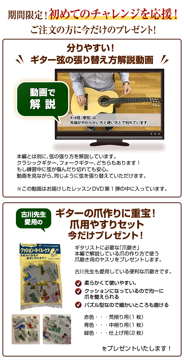返品はお受けしかねます。初めてでもギターが弾けるように工夫しておりますので