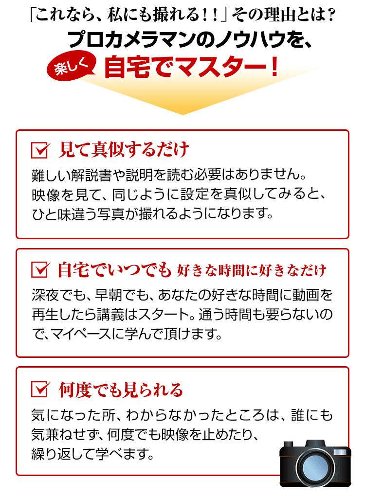 リアルな作品講評を見ることが出来ます。どうすれば、撮った写真がもっといい作品になるのか?「あー、あるある!」「分かる~」と思う内容になっています。 ぜひ参考にされてみてください。