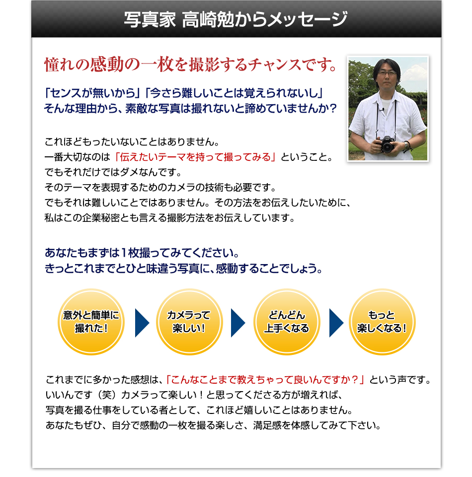写真がガラッと変わります。ただの写真を感動の一枚に変えるコツを学べます。