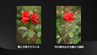 高崎先生の屋外の花を撮る時の構図の決め方の色々なパターンがわかります。 どうすればバランスの良い写真になるのか?