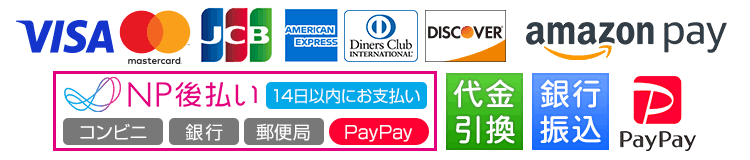 クレジットカード、代金引換、後払い決済、銀行振込、AmazonPay、PayPayがご利用可能です。