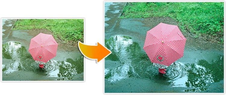 ですが、右側の写真のほうが雨の日の雰囲気がよく出て、傘の赤色が映えますよね。