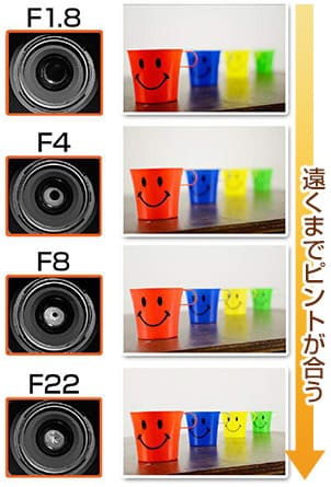 Fの数が大きいほど遠くのものまでピントが合っています。