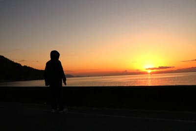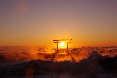 先日、夏目漱石の俳句”凩や海に夕日を吹き落とす”を知り、天草灘に年末の寒い夕方に