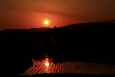 夕日で、その人生の終末を表現したいと思っております。