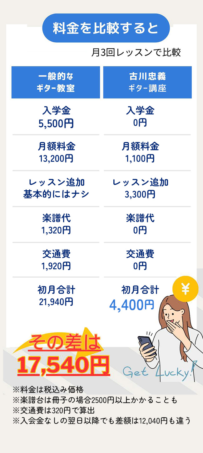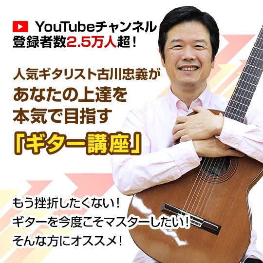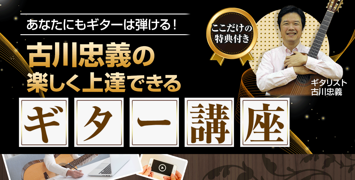 古川先生のギター講座なら、3回分のレッスンでたったの3,300円~。しかも繰り返し何度でもご覧になれます。