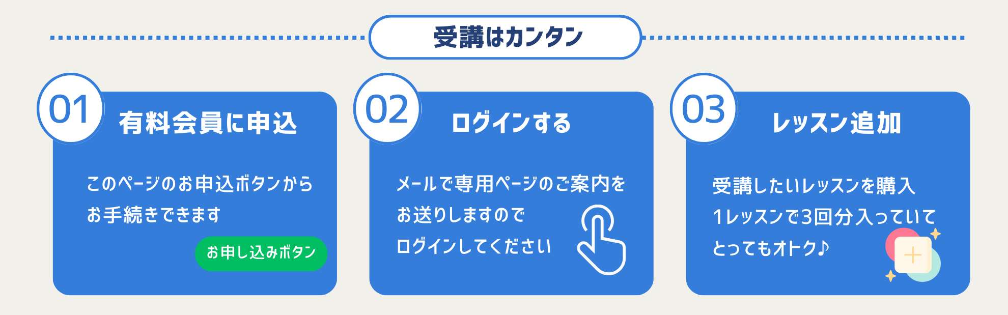- 会員だけの特別無料レッスンや限定動画など、特典が盛りだくさん!