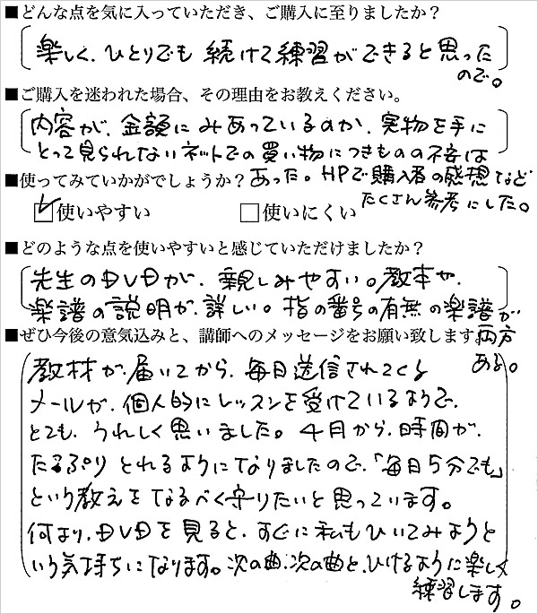 分かりやすい!私にも弾けた!嬉しいお便りを沢山いただいています。