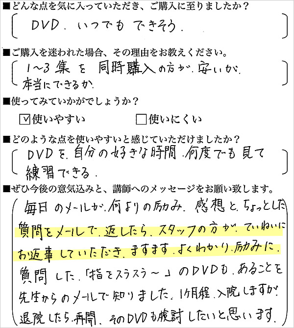 質問した「指をスラスラ~」のDVDもあることを先生からのメールで知りました。