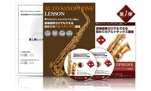 サックスの選び方、組み立て方、指使い、楽譜の読み方などです。1弾~3弾セットになりますと、基礎的な内容プラス、音楽的な内容が入ってきます。