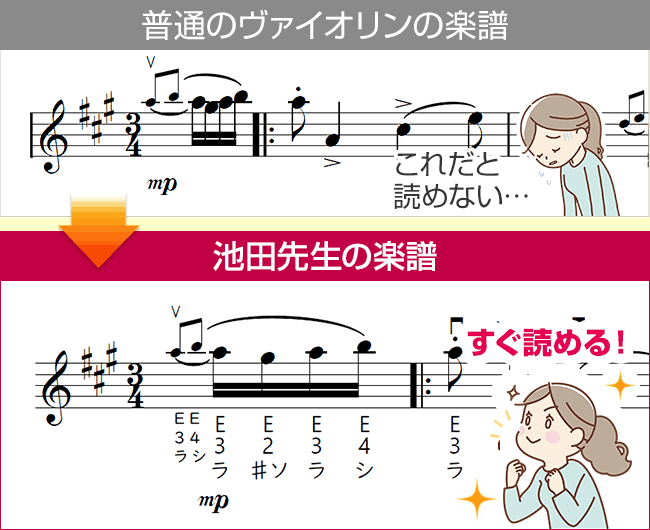 分かりやすい楽譜とレッスン。もっともっとヴァイオリンが楽しくなる池田先生のレッスンにあなたもチャレンジしませんか?